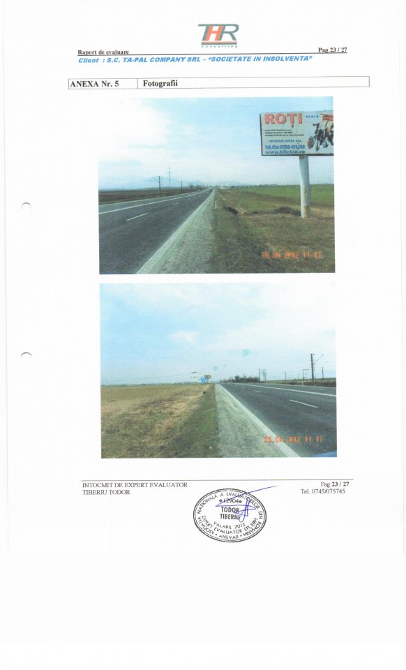 Lichidatorul judiciar al S.C. Ta-Pal Company S.R.L.-in faliment, vinde prin licitatie publica - teren arabil in suprafata de 13.700 mp situat la DN 11 (FS 28m), identificat in CF 100161 Harman nr. Top 1776 la pretul de pornire de 46.608 EUR.